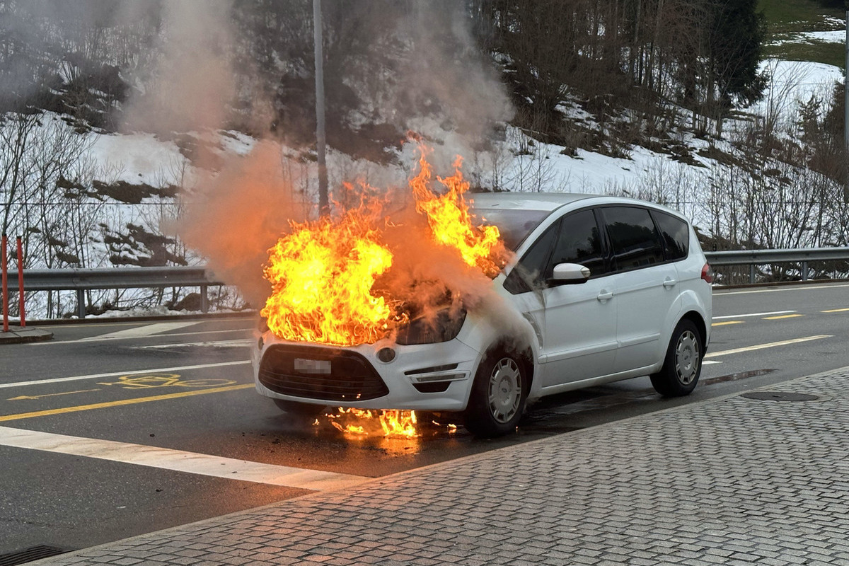 Einsiedeln SZ – Auto geht an Ampel in Flammen auf