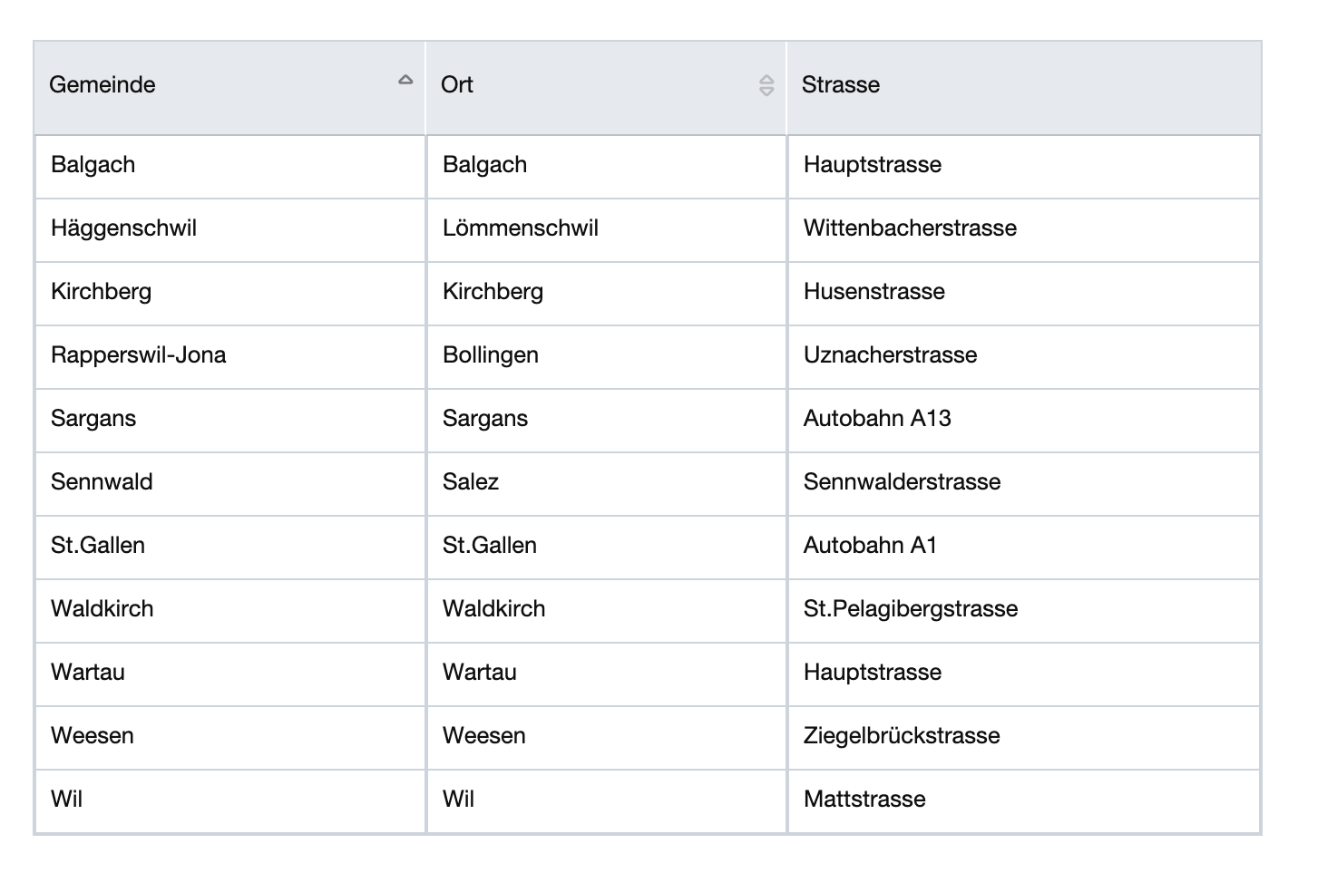 Anbei die Liste der Geschwindigkeitskontrollen der Kapo St.Gallen. An diesen Stellen wird die Geschwindigkeit gemessen.