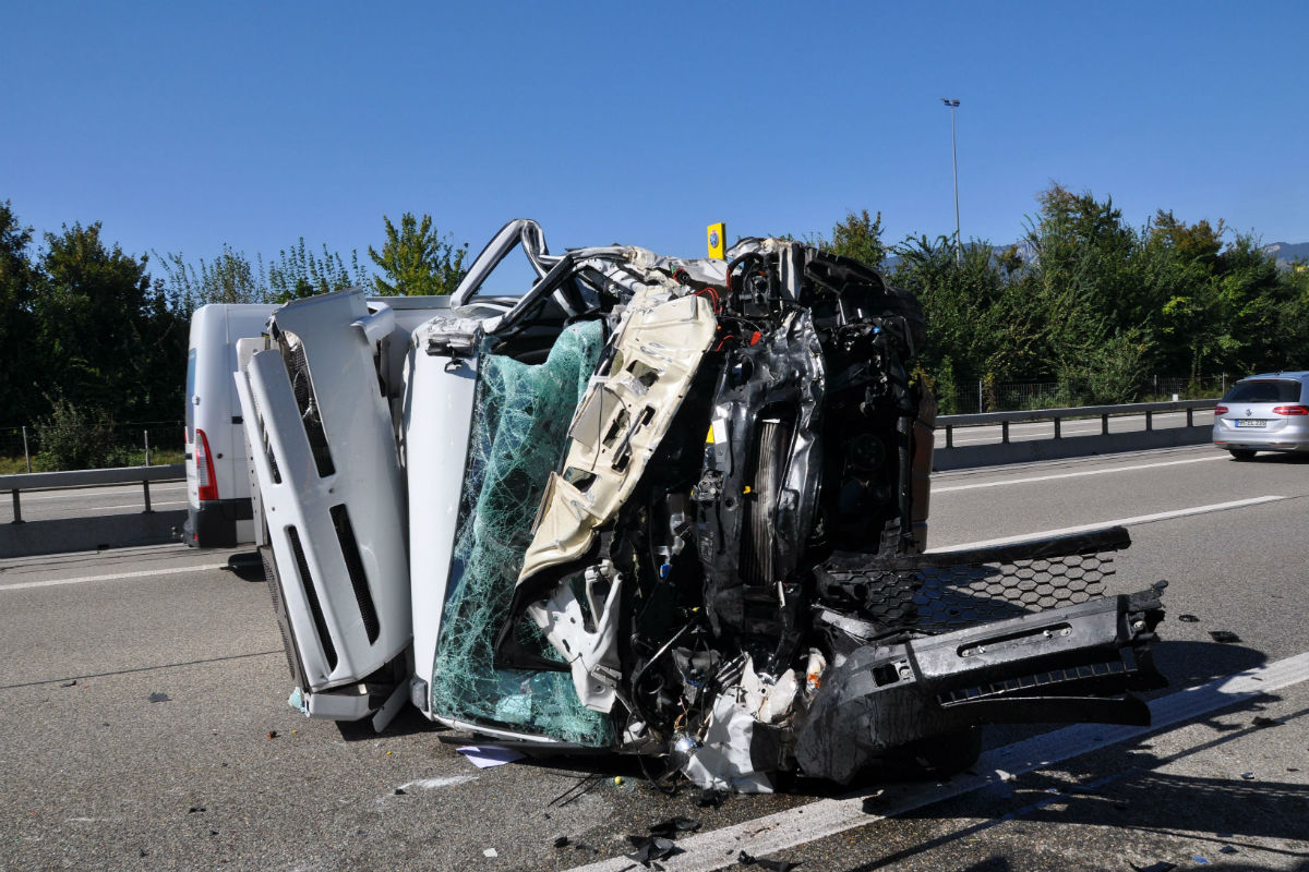 überschlug sich der Lieferwagen und flog gegen einen Lastwagen mit Anhänger. Im weiteren
