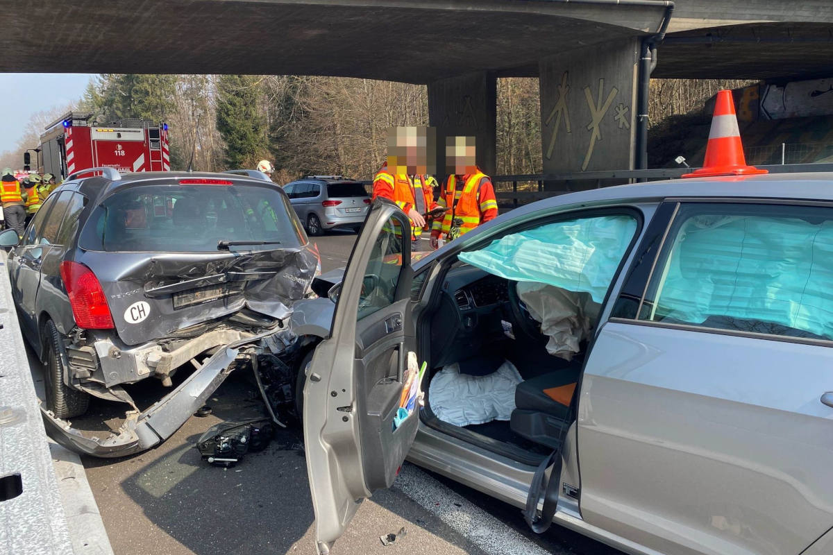 Auf der Autobahn A1 bei Derendingen, in Richtung Zürich, hat sich am Samstag, 4. März 2023, eine Auffahrkollision mit drei beteiligten Autos ereignet. Dabei sind zwei Fahrzeuglenkerinnen leicht bis mittelschwer verletzt worden.