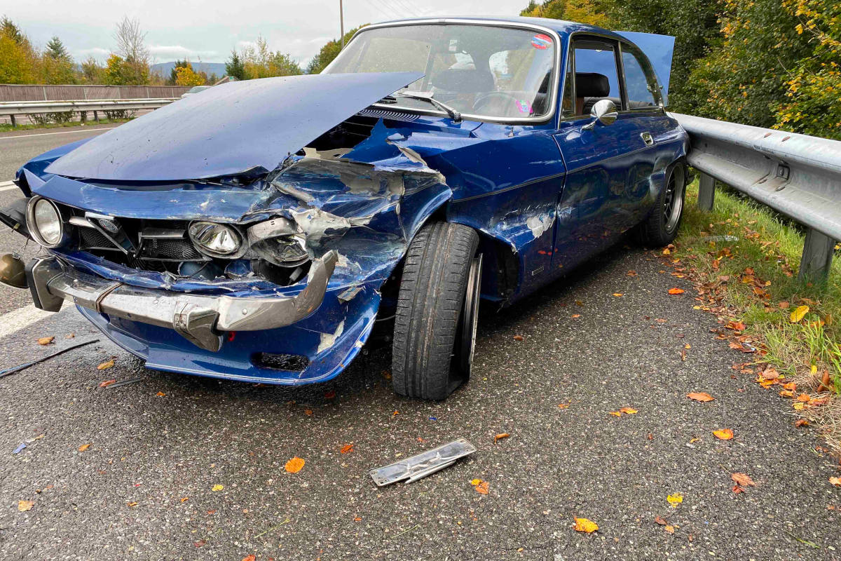 Kontrolle über Oldtimer verloren und in Leitplanke gekracht auf der A1 (Bildquelle: Kapo AG)