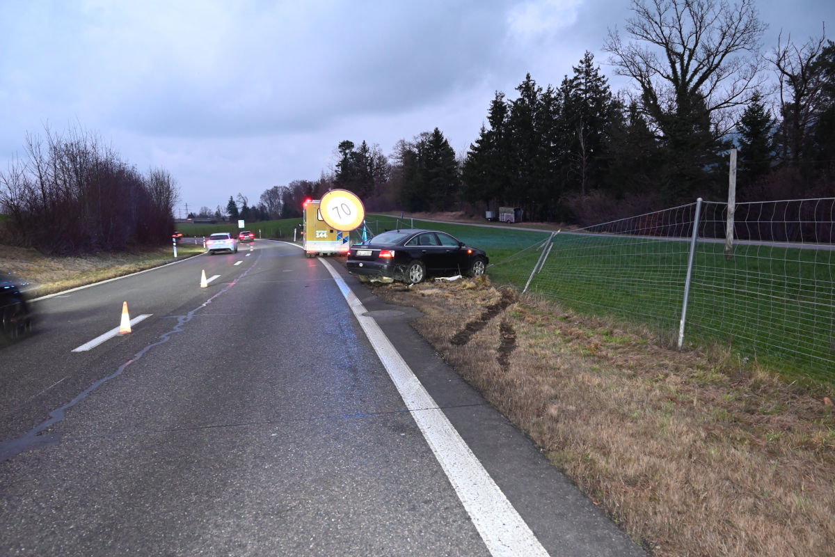 Dieses kam von der Fahrbahn ab und prallte gegen eine Geschwindigkeitstafel am Strassenrand sowie einen Randleitpfosten und den Wildschutzzaun. Der Rettungsdienst brachte die Frau zur Kontrolle ins Spital. Sie blieb unverletzt.