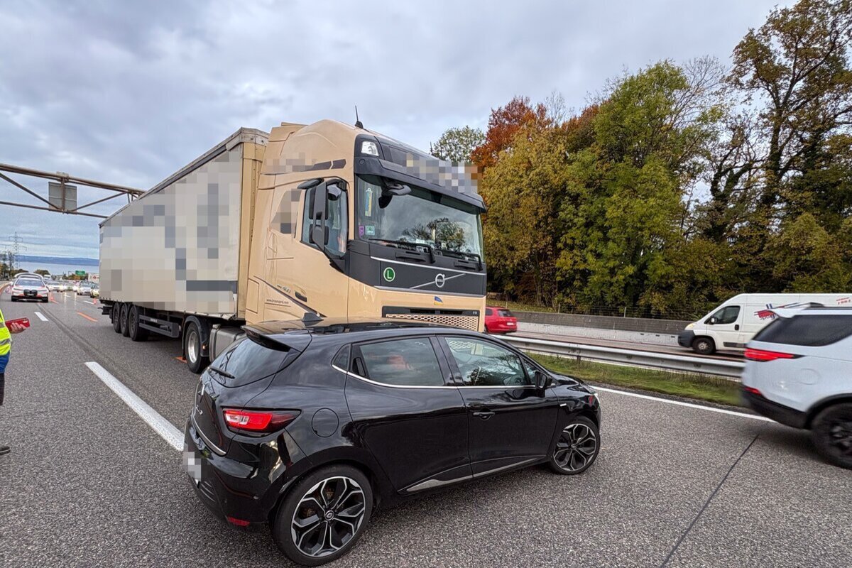 Dabei übersah er das Auto des 21-Jährigen, woraufhin es zur Kollision kam und das Auto vor den Lastwagen geschoben wurde. Die Fahrzeuge kamen anschliessend in der Mitte der beiden Fahrstreifen zum Stillstand.