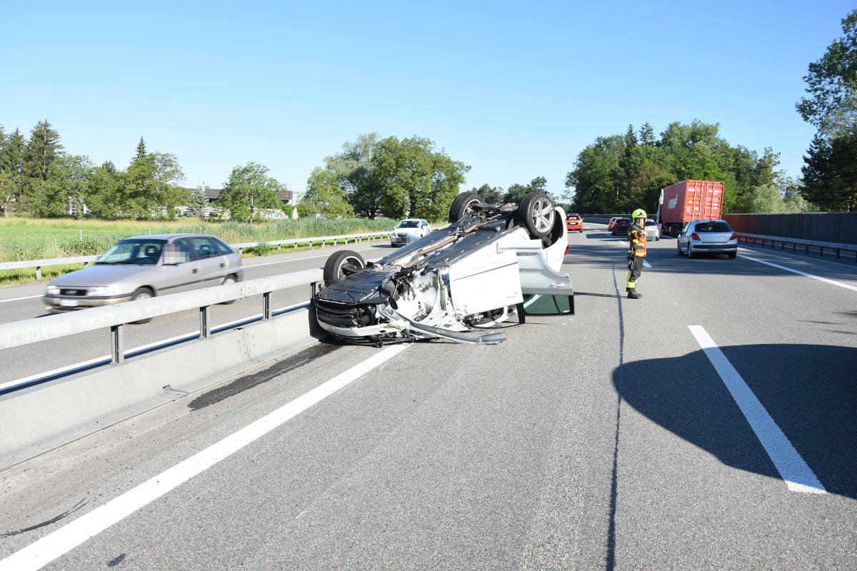 A1 Rheineck SG – Mutter mit zwei Kleinkinder überschlägt sich mit Auto nach Kollision