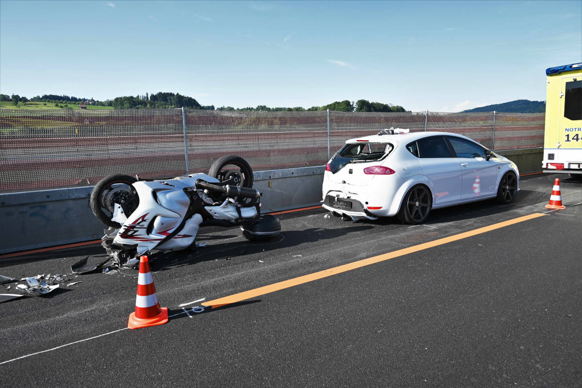 Auffahrunfall auf der A1 in St. Gallen zwischen Auto und Motorrad (Bildquelle: Kantonspolizei St. Gallen)