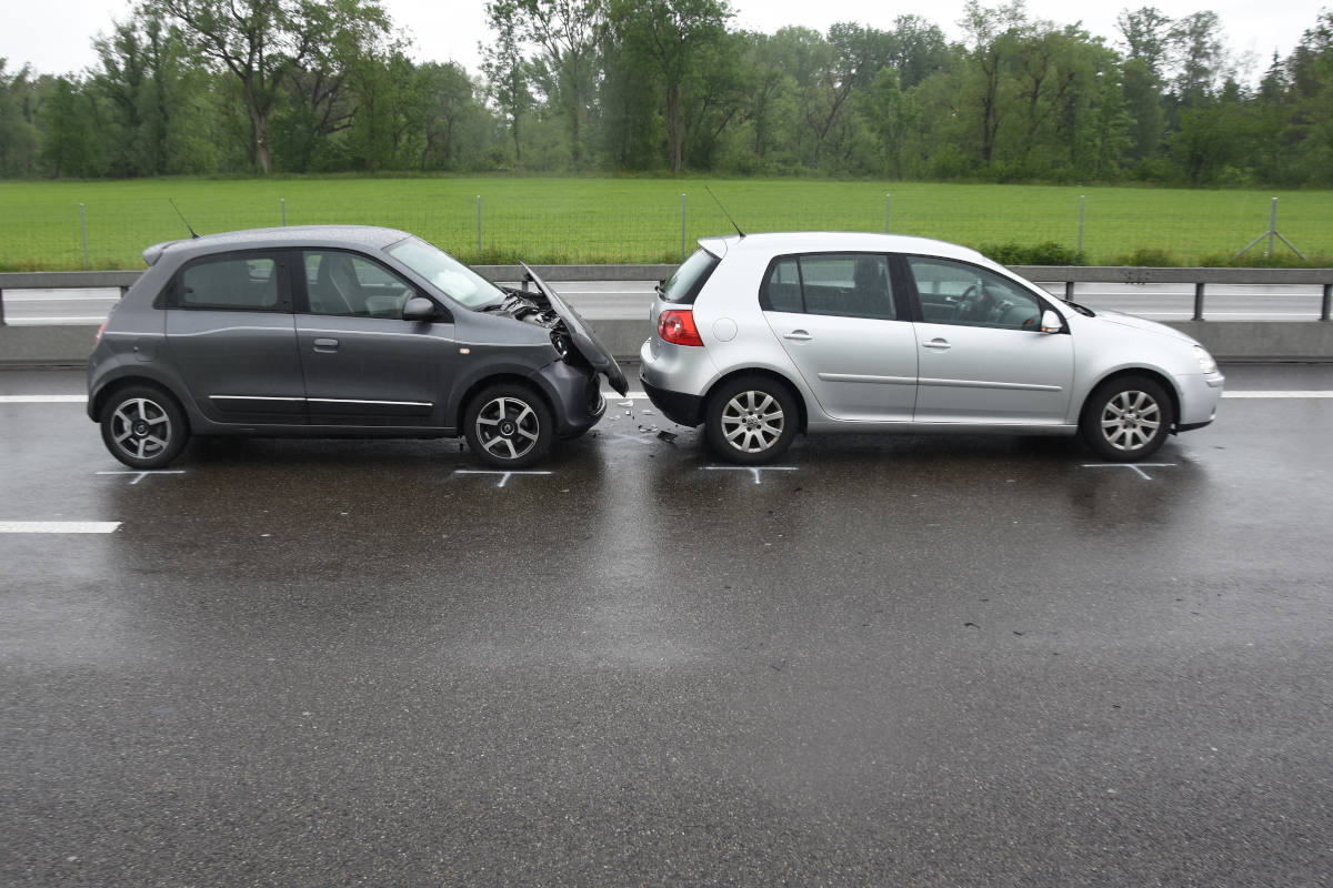 Anlässlich der Unfallaufnahme kam es zu einem Rückstau. Ein 61-jähriger Mann hielt sein Auto aufgrund dessen auf dem Überholstreifen bis zum Stillstand an. Eine hinter ihm fahrende 86-jährige Frau bemerkte dies zu spät und prallte mit ihrem Auto gegen das Heck des stillstehenden Autos. Dabei wurde die Frau leicht verletzt. Sie wurde mit dem Rettungsdienst ins Spital überführt. Es entstand Sachschaden in Höhe von rund 10'000 Franken.