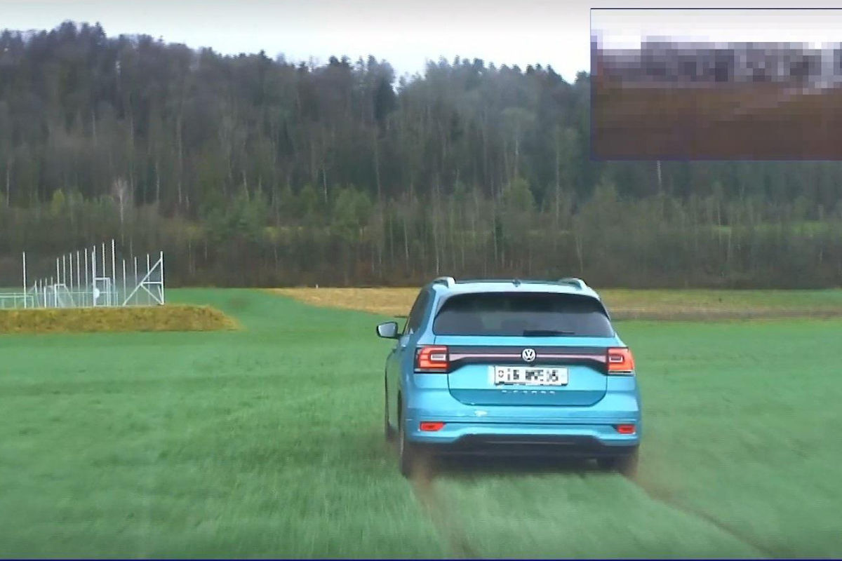 Der Personenwagen der Flüchtenden bei der Fahrt über ein Feld. (Bildquelle: Kantonspolizei Zürich)