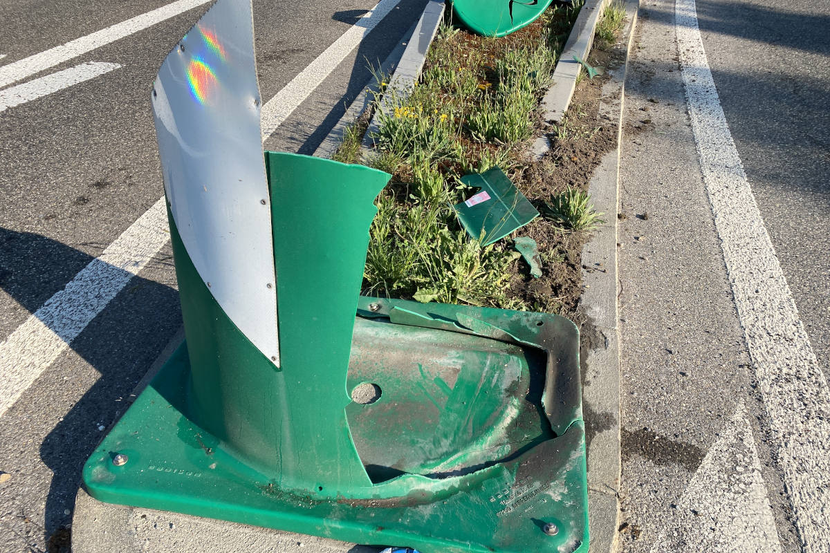 Auf der A1 bei Wettingen gegen Poller geprallt und abgehauen (Bildquelle: Kantonspolizei Aargau)