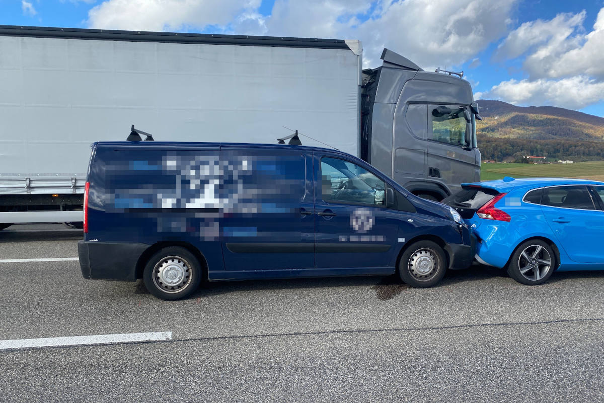 Am Donnerstag, 21. Oktober 2021/15 Uhr, ereignete sich auf dem 1. Überholstreifen der Autobahn A1 bei Wiedlisbach in Richtung Zürich eine Auffahrkollision mit drei beteiligten Fahrzeugen. Dabei wurde der Beifahrer im Lieferwagen und ein Kind im vordersten Auto leicht, und der Lenker des mittleren Autos mittelschwer verletzt.