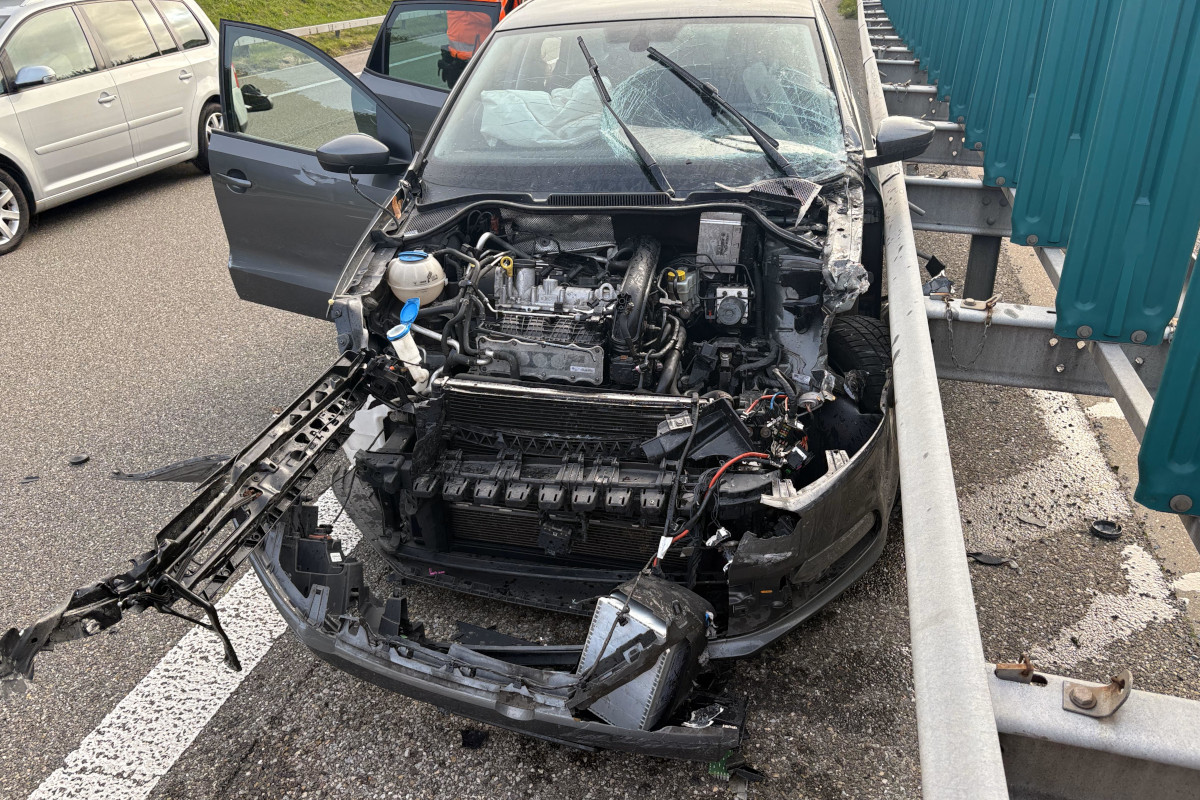 Das Auto wurde auf die Fahrbahn zurückgewiesen und kam auf dem Überholstreifen zum Stillstand. Durch die Kollision wurde die Autofahrerin unbestimmt verletzt.