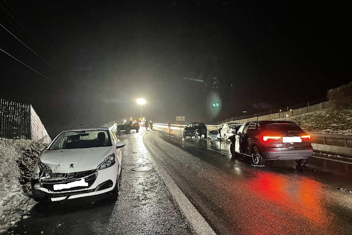 Am Freitag, 3. Dezember 2021, kurz nach 23.30 Uhr, ereignete sich auf der Autobahn A12 zwischen Vaulruz und Bulle eine Massenkarambolage mit sechs beteiligten Fahrzeugen. Der betroffene Autobahnabschnitt war bis kurz nach 4 Uhr morgens für den Verkehr gesperrt, da die Fahrbahn vereist war und gereinigt werden musste. Der Autobahnverkehr wurde bei der Verzweigung Vaulruz auf die Kantonalstrasse umgeleitet.