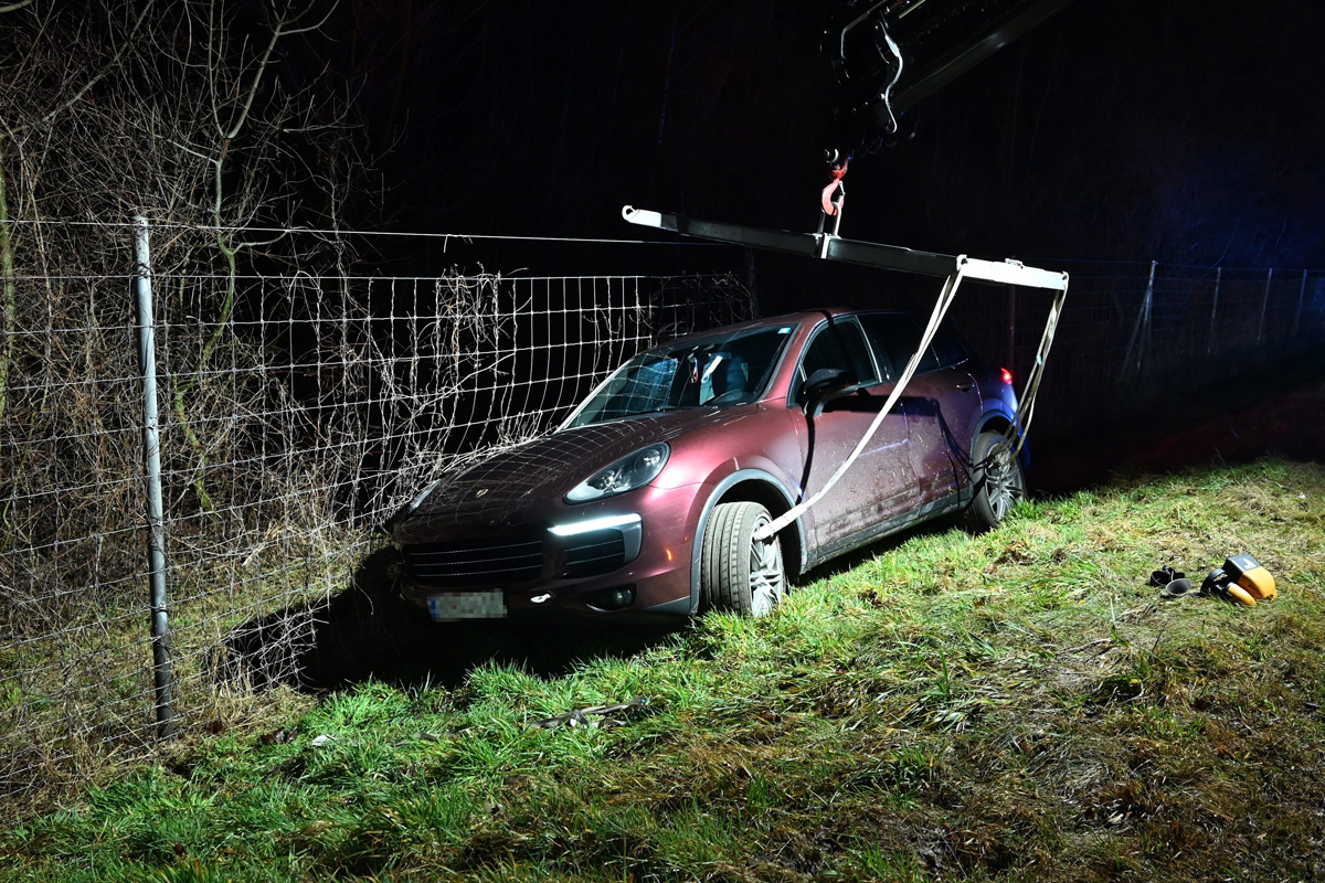 Während der Fahrt auf der Autobahn kam der Mann mit dem Auto über den rechten Fahrbahnrand, befuhr das abfallende Wiesenbord und streifte den Wildschutzzaun, woraufhin das Auto zum Stillstand kam.