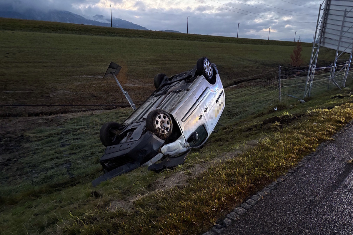Auf der A13 bei Diepoldsau kam es am Dienstagmorgen zu einer heftigen Auffahrkollision. Ein Lieferwagen überschlug sich und blieb auf dem Dach liegen. Der Fahrer wurde verletzt.