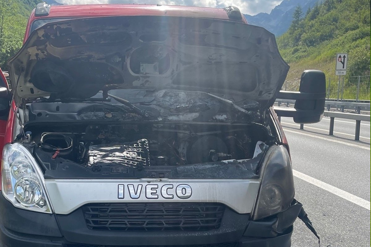 Auf dem rund drei Kilometer langen offenen Abschnitt bei Hinterrhein geriet der Motorraum kurz nach 15 Uhr rund 500 Meter vor dem nächsten Tunnel Cassanawald in Brand.