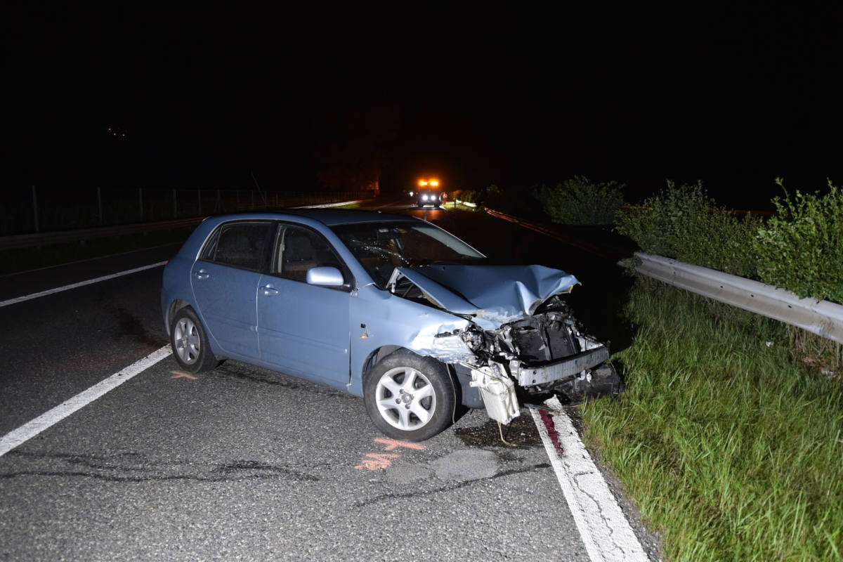 Kollision mit Mittelleitplanke auf der A13 bei Maienfeld (Bildquelle: Kantonspolizei Graubünden)