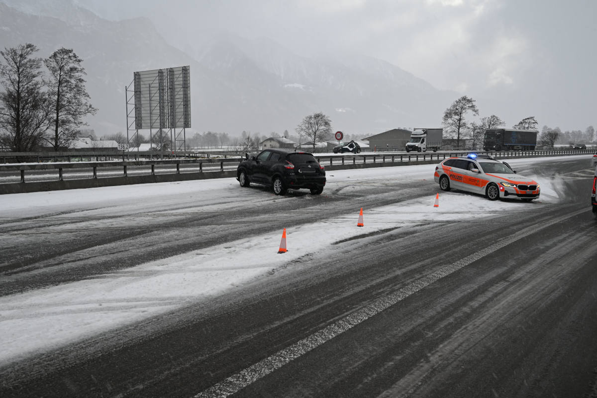 Eine 31-jährige Kantonspolizistin und ihr Beifahrer rückten auf der schneebedeckten A13 an einen Verkehrsunfall aus. Im Bereich des Verzögerungsstreifen der Ausfahrt in Richtung St.Gallen geriet ihr Auto ins Schleudern. Es überquerte die Autobahn und kam auf der Fahrbahn zum Stillstand. Dort kollidierte das Auto einer 39-jährigen Frau mit dem stehenden Polizeiauto. Alle drei Personen mussten durch die Rettung ins Spital gebracht werden. Sie konnten dieses zwischenzeitlich wieder verlassen.
