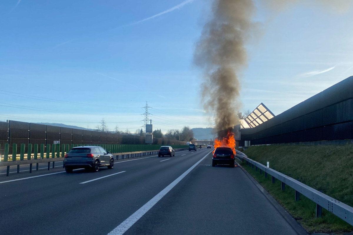 Am Donnerstagmorgen (16. März 2023), kurz nach 07:30 Uhr, fuhr eine 27-jährige Fahrzeuglenkerin auf der Autobahn A14 in Richtung Autobahnende in Walterswil. Vor der Autobahnausfahrt Baar stellte sie im Fahrzeuginneren eine Rauchentwicklung fest, fuhr auf dem Pannenstreifen und wählte den Notruf. Beim Eintreffen der Rettungskräfte stand das Auto bereits in Vollbrand und musste durch die Stützpunktfeuerwehr der Stadt Zug (FFZ) gelöscht werden.