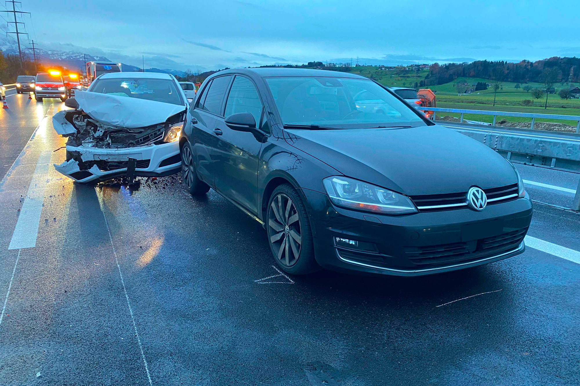 Der Unfall ereignete sich am Dienstagmorgen (22. November 2022), kurz vor 07:15 Uhr, auf der Autobahn A14, zwischen Gisikon und der Verzweigung Rütihof. Ein 42-jähriger Fahrzeuglenker realisierte zu spät, dass sich der Verkehr vor ihm staute. Um eine Kollision mit dem vorausfahrenden Fahrzeug zu verhindern, musste er stark bremsen und auf den Normalstreifen ausweichen. Ein nachfolgender, dritter Fahrzeuglenker, ein 29-jähriger Mann, konnte eine Kollision nicht mehr verhindern und prallte in die beiden vor ihm stehenden Autos.