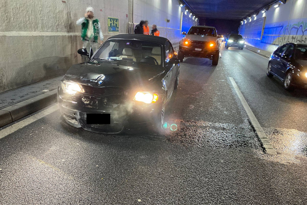 A18 Reinach BL – 19-jähriger BMW-Lenker kracht beim Überholen in Tunnelwand