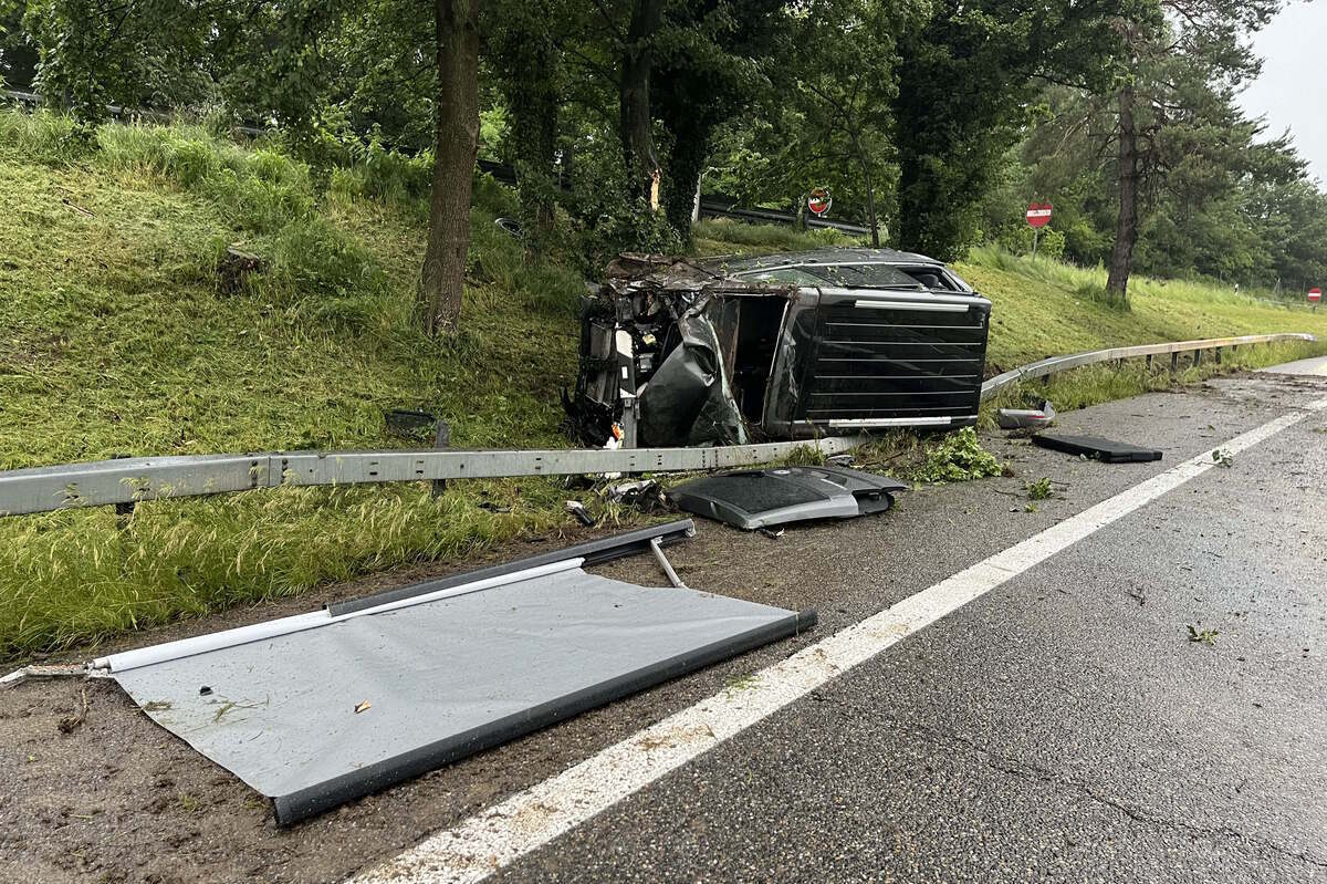 A1/Goldach SG - Auto gerät bei Unfall auf Leitplanke