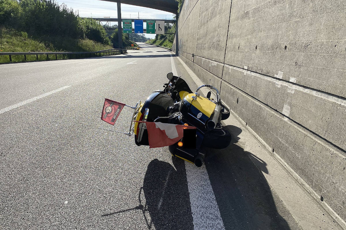 Kollision zwischen Personenwagen und Motorrad auf der A2 (Bildquelle: Polizei Basel-Landschaft)