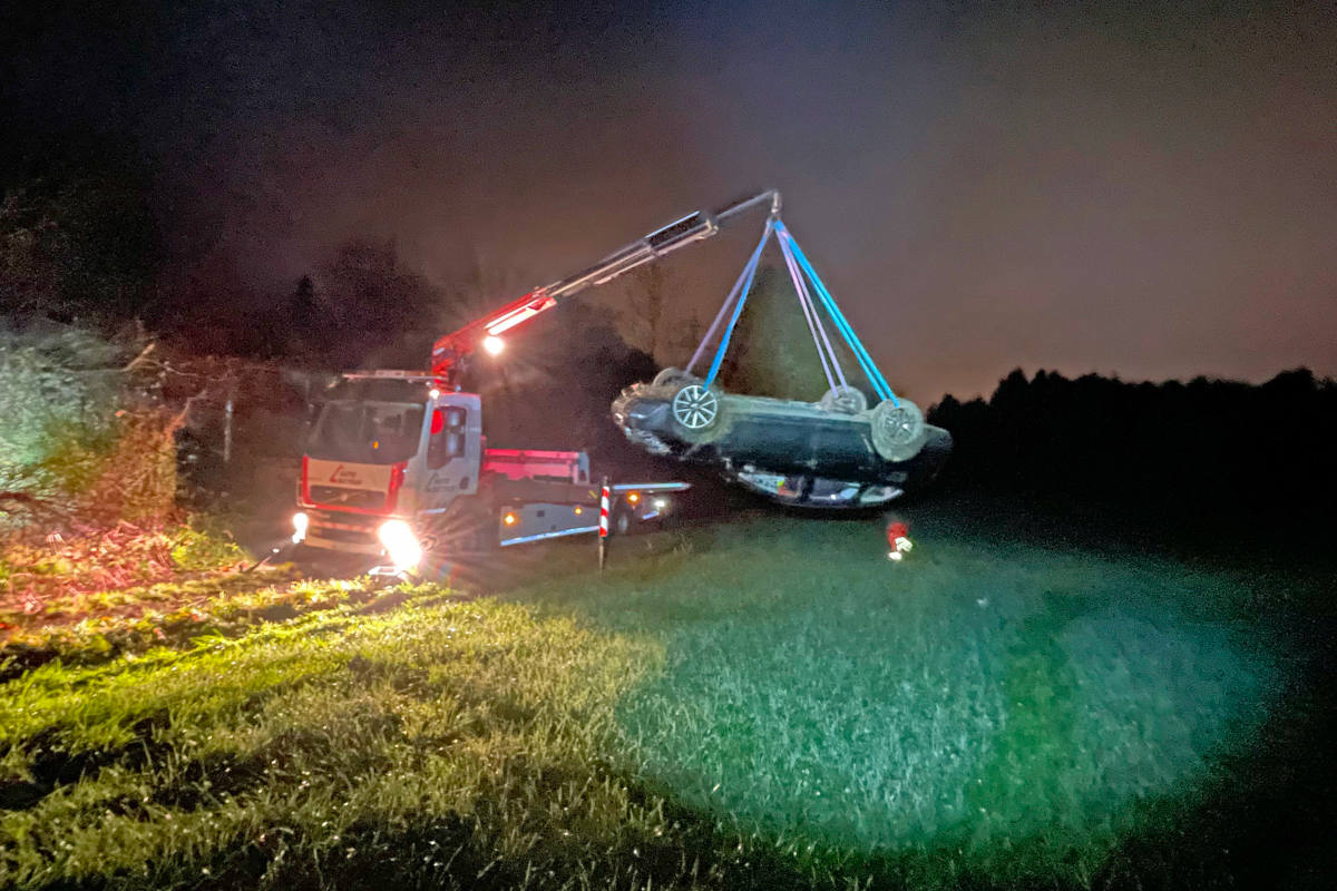 Gestern Abend geriet ein Auto von der Autobahn A2 bei Rothenburg, kollidierte mit einer Hecke und kam auf dem Dach liegend zum Stillstand. Die Autofahrerin und ein fünfjähriges Kind blieben unverletzt.