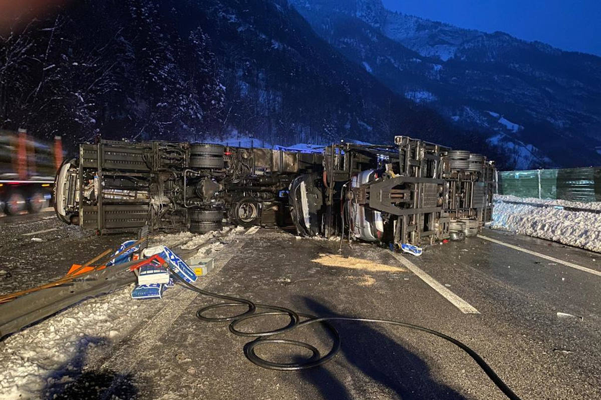 Heute Donnerstag, 28. Januar 2021, kurz vor 6.25 Uhr, fuhr der Lenker eines Autoporters mit italienischen Kontrollschildern auf der Autobahn A2 in Richtung Norden.