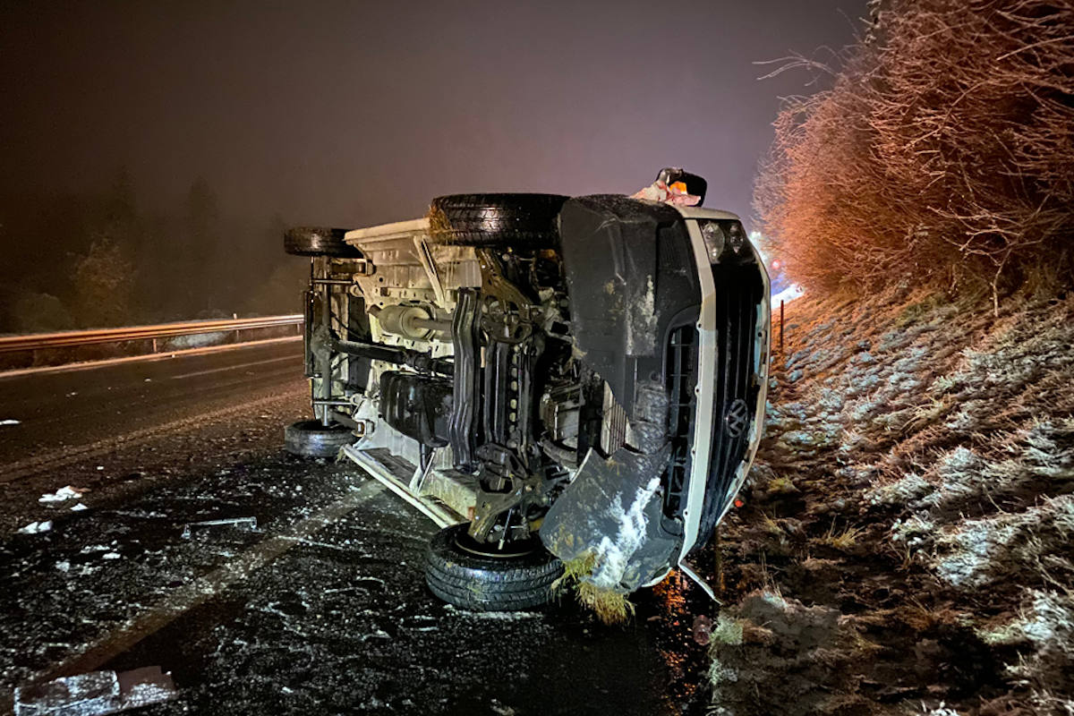 Am Sonntagabend (9. Januar 2022), ca. 22:30 Uhr, ereignete sich auf der Autobahn A2 in Fahrtrichtung Norden ein Selbstunfall. Ein 34-jähriger Mann kam mit seinem Lieferwagen ins Schleudern und fuhr eine Böschung hoch. Kurz vor der Ausfahrt "Rastplatz Kirchbühl" kippte der Lieferwagen zurück auf die Fahrbahn. Der Lenker wurde erheblich verletzt.