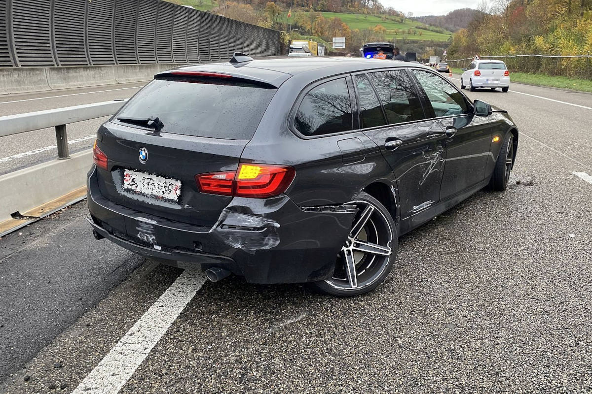 Der Personenwagen drehte sich, kollidierte mit der Mitteilleitplanke und kam anschliessend auf dem Überholstreifen zum Stillstand. Der Lastwagenlenker fuhr weiter, ohne sich um den Schaden zu kümmern. Verletzt wurde beim Unfall niemand. Der beschädigte Personenwagen musste durch ein Abschleppunternehmen aufgeladen und abtransportiert werden.