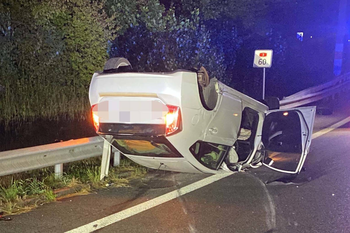Heute Nacht prallte ein Fahrzeug gegen die Randleitplanke und überschlug sich. Die Lenkerin wurde verletzt. Es entstand Sachschaden.