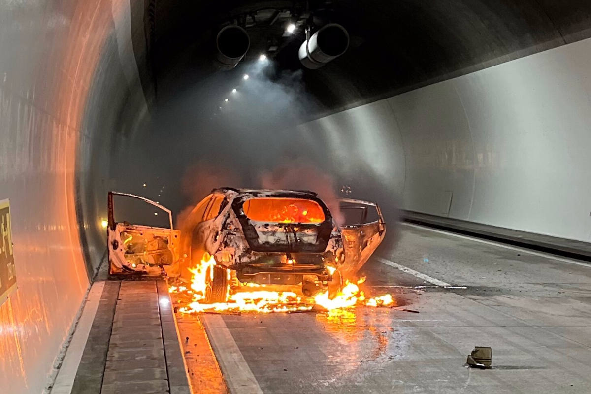 Auto brennt nach Unfall im Quartentunnel aus (Bildquelle: Kantonspolizei St. Gallen)