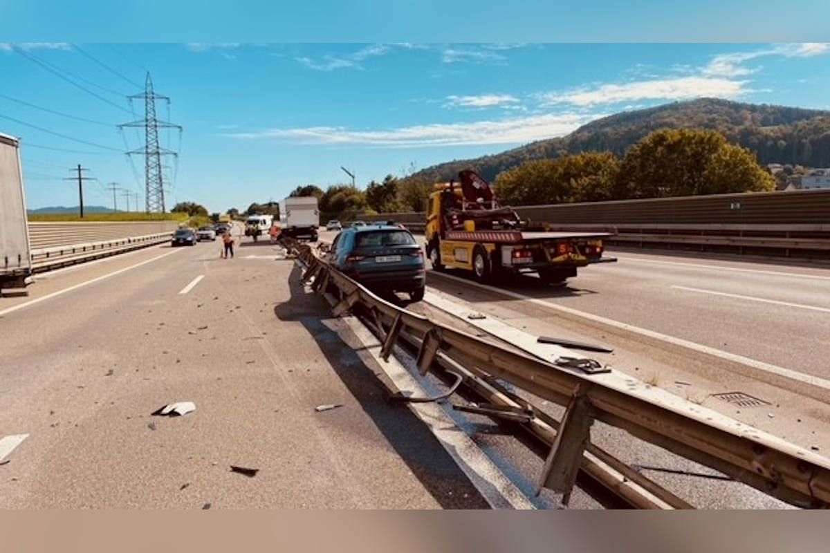Die Unfallfahrzeuge blockierten den Überholstreifen in Richtung Zürich. Da die auf rund 80 Metern beschädigte Mittelleitplanke in die Gegenfahrbahn ragte, musste die Kantonspolizei auch den Überholstreifen in Richtung Basel sperren. Die Verkehrsbehinderung führte im dichten Verkehr sofort zu langen Staus. Die Räumungs- und Reparaturarbeiten dauern zur Stunde noch an.