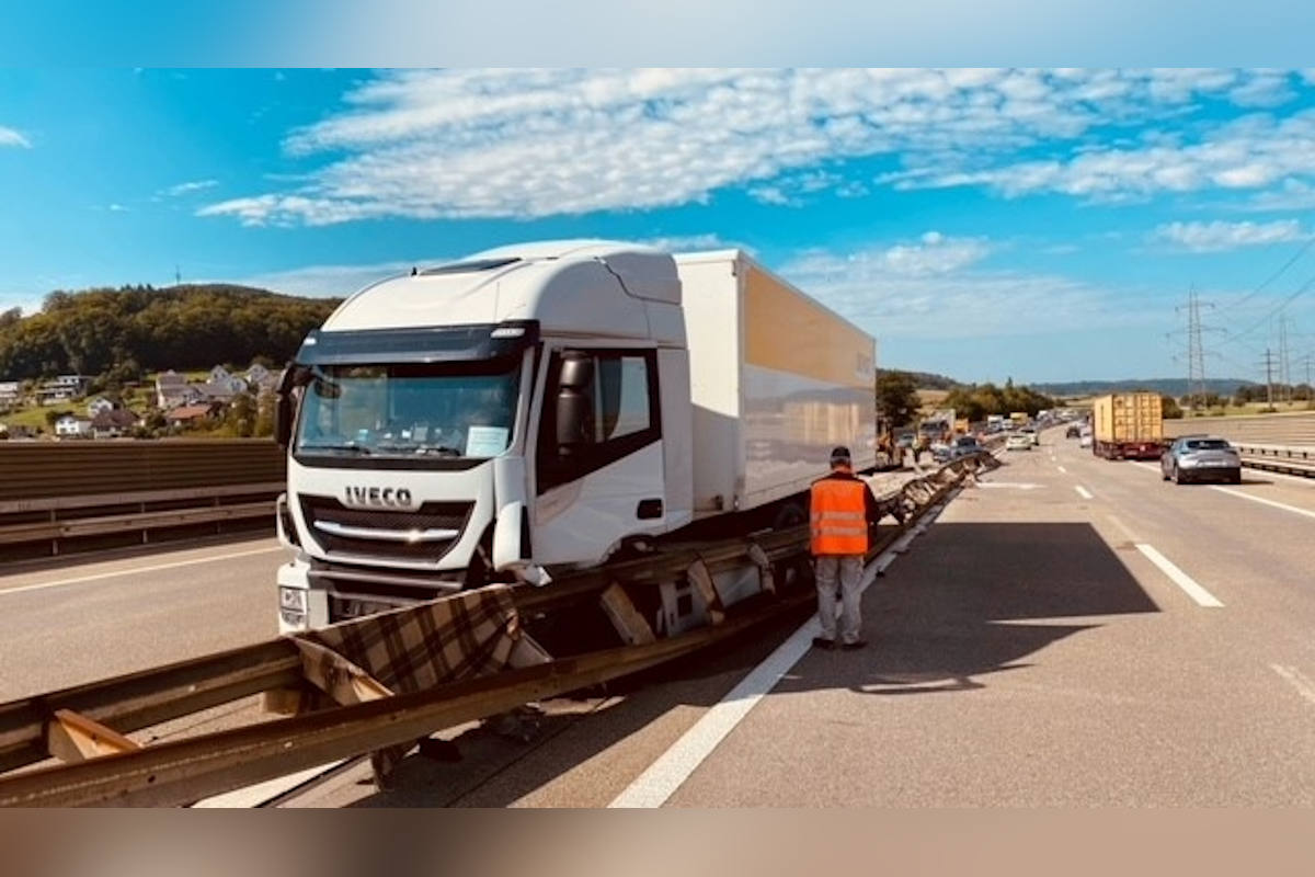 Der Unfall ereignete sich am Freitag, 3. September 2021, um 10.20 Uhr auf der A3 bei Zeiningen. Als Lenker eines Sattelschleppers mit Anhänger fuhr der 56-jährige Chauffeur in Richtung Zürich. Dabei verlor er plötzlich die Kontrolle über seine Komposition und geriet nach rechts. Zunächst prallte der Sattelschlepper gegen die Randleitplanke und schwenkte danach zurück auf die Fahrbahn. Dort stiess der Lastwagen mit einem Auto zusammen und prallte noch gegen die Mittelleitplanke. Die Fahrzeuge kamen schliesslich auf dem Überholstreifen zum Stillstand.