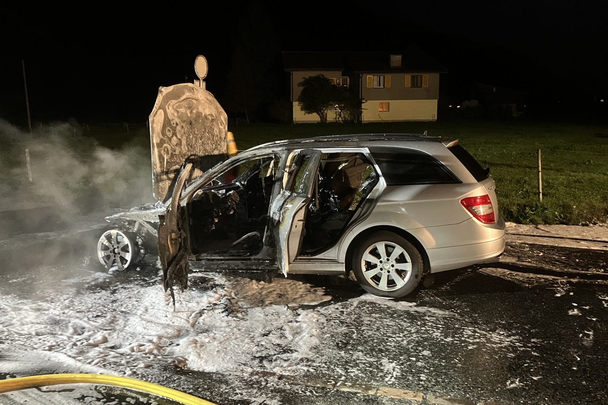 Am Samstag, 30.09.2023, 19.30 Uhr, ist ein Auto auf der Flechsenstrasse in Mollis in Brand geraten.