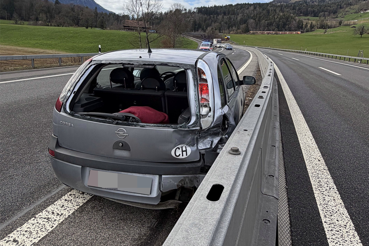 Durch die Wucht der Kollision geriet der Personenwagen ins Schleudern, drehte sich um die eigene Achse und kam auf dem Überholstreifen zum Stillstand. Die Lenkerin wurde dabei leicht verletzt und durch den Rettungsdienst in Spitalpflege gebracht.