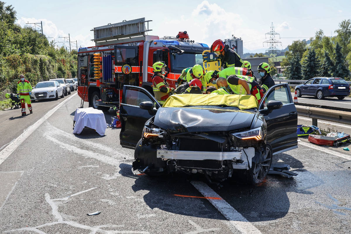 Am Samstag (4. September 2021), kurz nach 14 Uhr, hat sich auf der Autobahn A4, zwischen Küssnacht und Rotkreuz, Fahrtrichtung Rotkreuz, ein Verkehrsunfall zwischen zwei Autos ereignet. In den beiden Fahrzeugen sassen zwei bzw. vier Insassen. Alle sechs Unfallbeteiligten sind verletzt, einige lebensbedrohlich. Mehrere Insassen wurden in den Fahrzeugen eingeklemmt. Die Stützpunktfeuerwehren Küssnacht und Zug (FFZ) bargen sie aus den Autos. Die Verletzten im Alter zwischen 18 und 47 Jahren wurden von den Rettungsdiensten Küssnacht, Schwyz und Luzern oder der Rettungsflugwacht REGA in verschiedene Spitäler überführt.