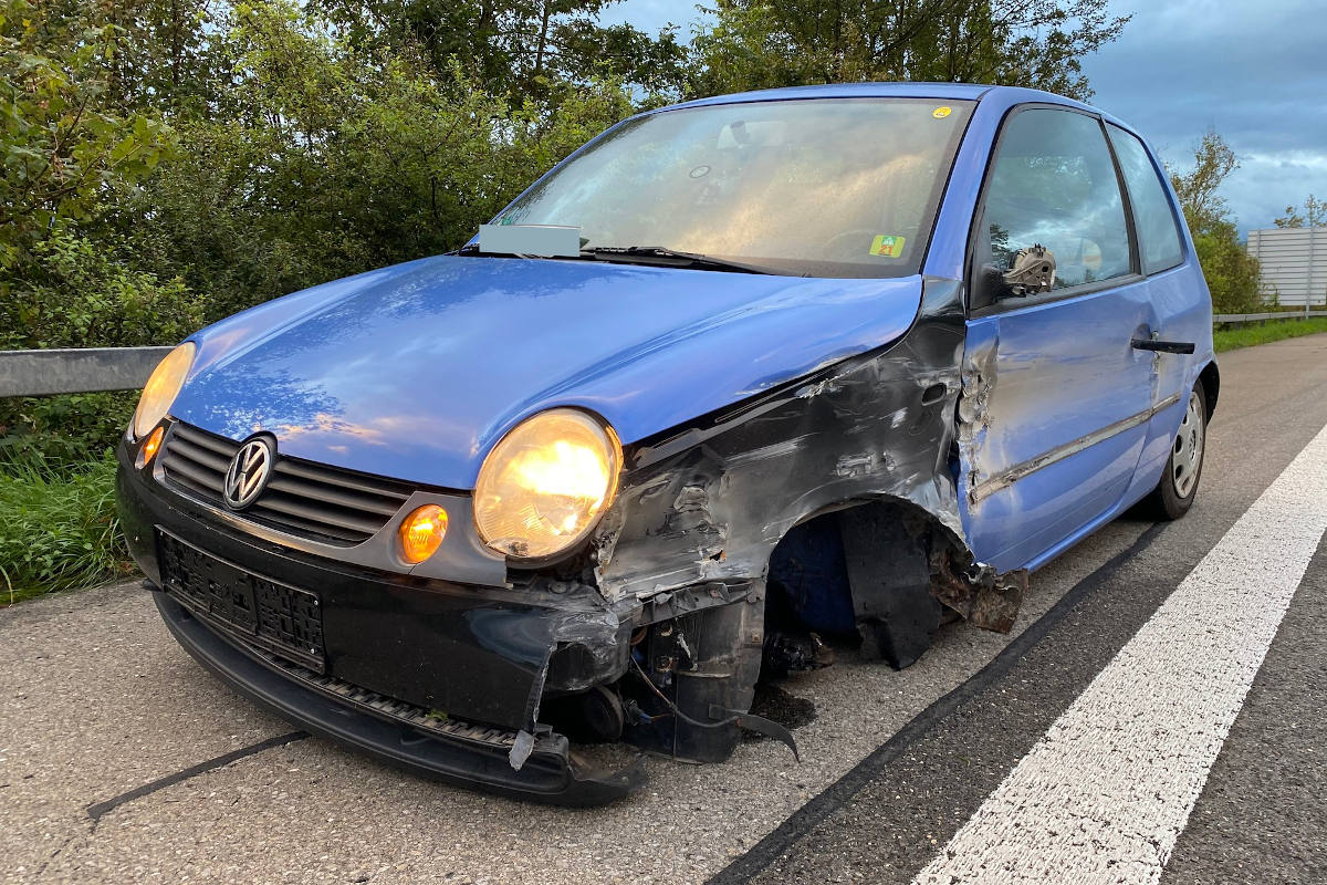 Auto verliert Rad bei Selbstunfall auf der Autobahn A4 bei Risch Rotkreuz (Bildquelle: Zuger Polizei)