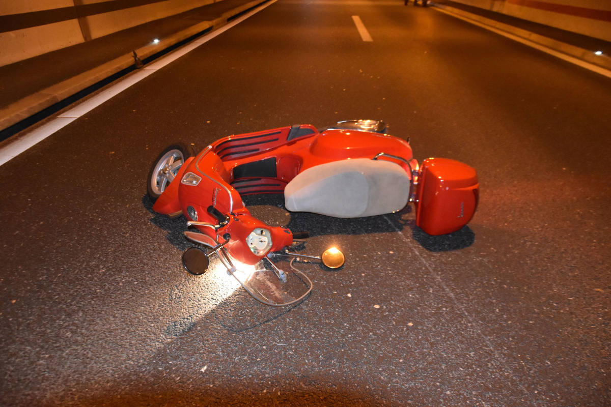 Verunfallter Motorroller auf der A5 bei Biberist SO (Bildquelle: Kantonspolizei Solothurn)