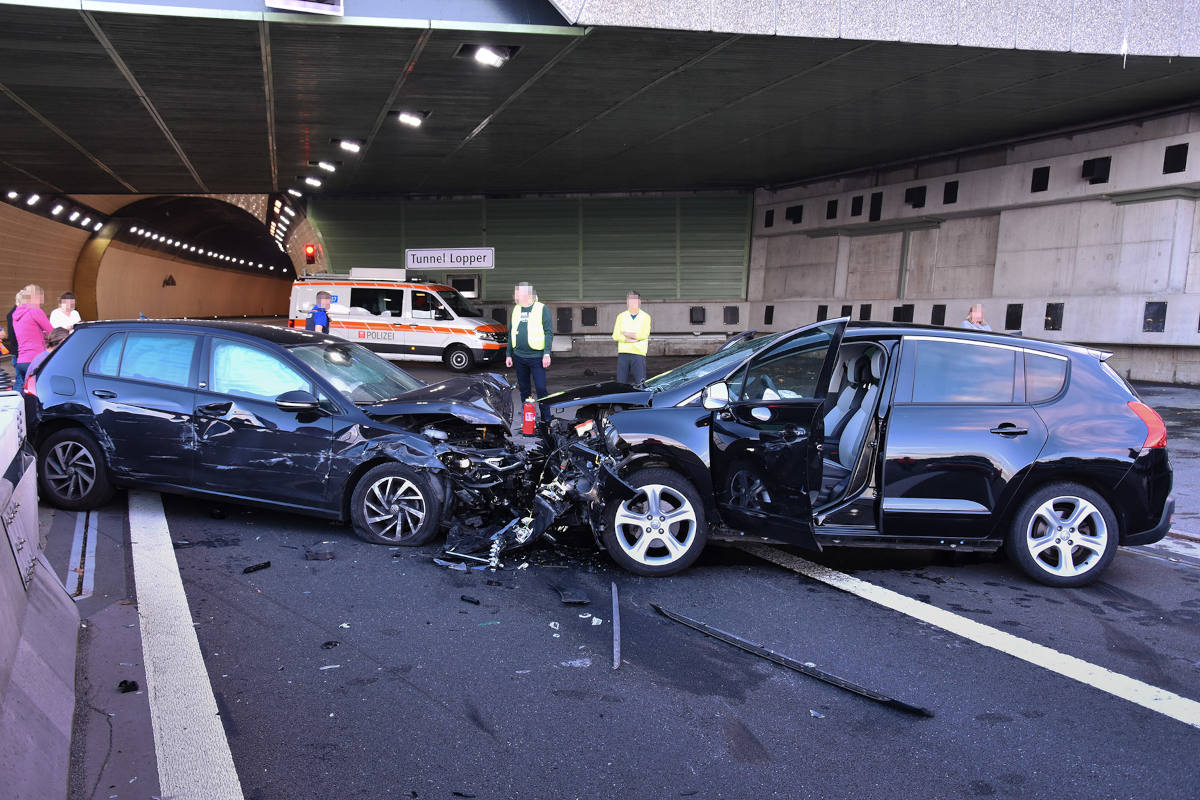 Ein Lenker fuhr mit seinem Personenwagen von Obwalden herkommend durch den Tunnel Lopper in Fahrtrichtung Luzern. Nach der Tunneldurchfahrt kam der Lenker im Portalbereich auf die Gegenfahrbahn und kollidierte leicht mit dem physischen Anpralldämpfer und anschliessend frontal mit einem korrekt entgegenkommenden Personenwagen. Beide Fahrzeuge kamen in der Folge auf der Fahrspur in Richtung Obwalden zum Stillstand.