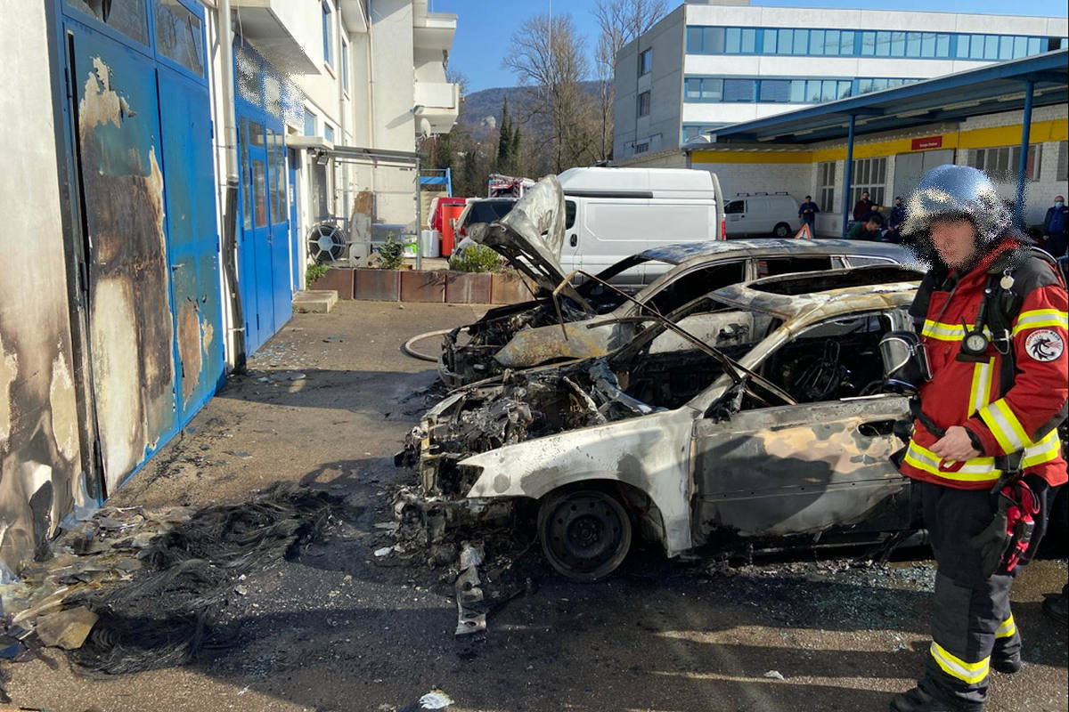 Am Sonntagmittag, 28. Februar 2021, kurz vor 14.00 Uhr, gerieten zwei parkierte Personenwagen auf einem Garagenvorplatz in einem Industrieareal an der Dornacher-strasse in Aesch BL in Brand. Personen wurden keine verletzt.