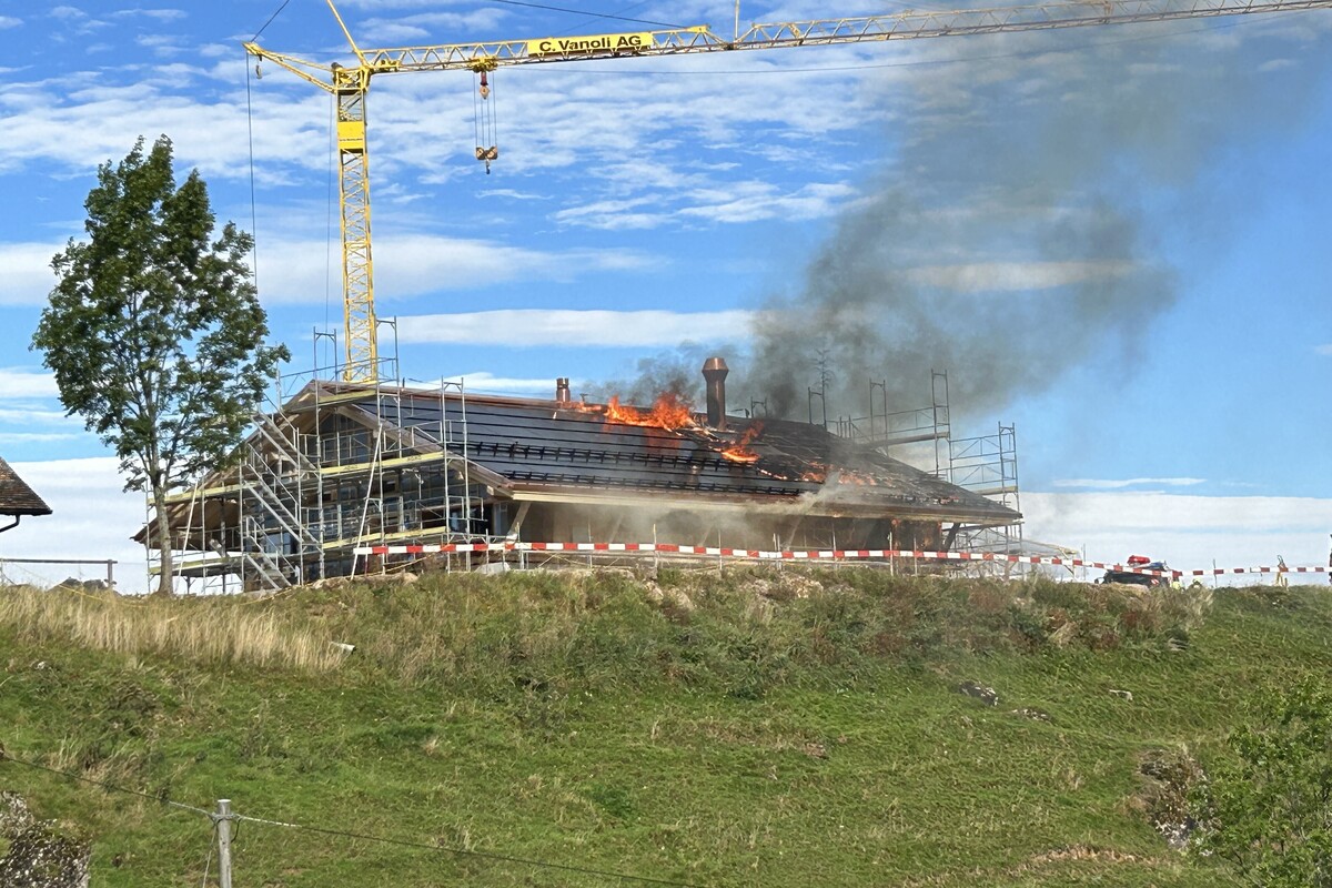 Kurz nach 10 Uhr gingen am heutigen Samstag, 14. Oktober 2023 bei der Kantonspolizei Schwyz mehrere Meldungen über einen Brand auf der Alp Ruodisegg ein.