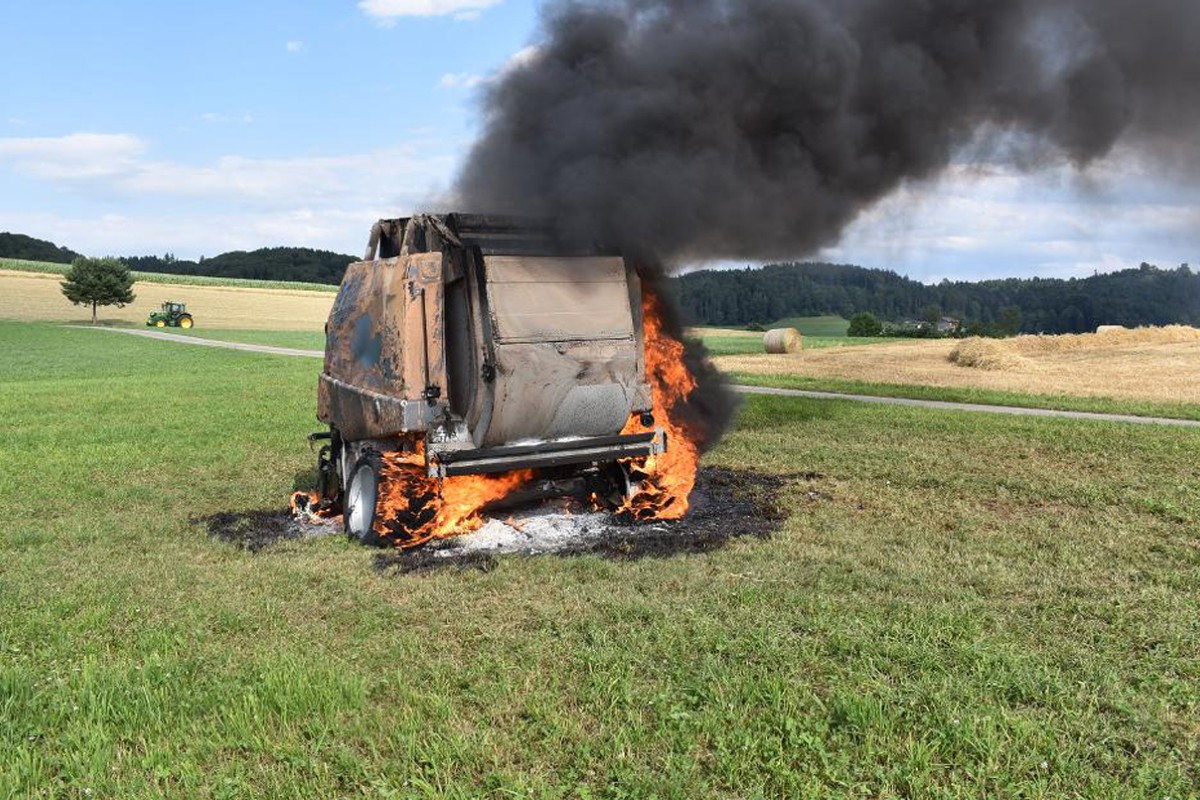Die Ballenpresse wurde komplett zerstört. Die Brandursache wird abgeklärt.