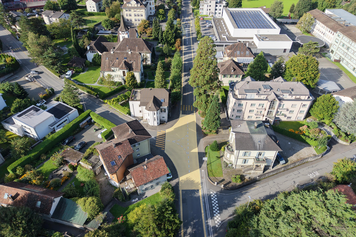 Seit Donnerstag, 4. September 2025, gibt es auf der Bahnhofstrasse zwischen Schulhaus Hagen und Gotthardstrasse neue Markierungen.