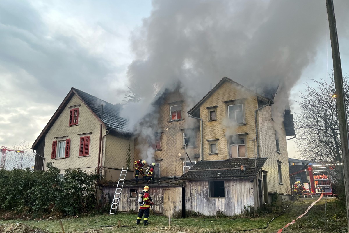 Die ausgerückten Rettungskräfte stellten vor Ort eine starke Rauchentwicklung fest und im Innern konnten Flammen gesehen werden. Die Liegenschaft war unbewohnt. Drei Personen aus dem angrenzenden Haus wurden evakuiert. Ein 18-jähriger Nachbar wurde wegen Verdacht einer Rauchgasvergiftung durch den Rettungsdienst zur Kontrolle ins Spital gebracht.