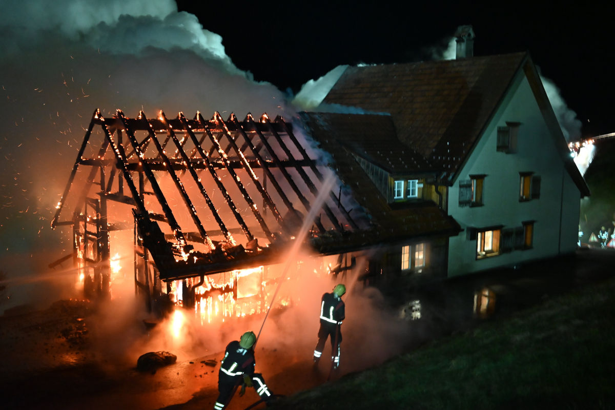Am Freitag ist eine Scheune an der Oberen Wart in Altstätten in Brand geraten. Die Scheune brannte komplett ab und es entstand Sachschaden von mehreren hunderttausend Franken.