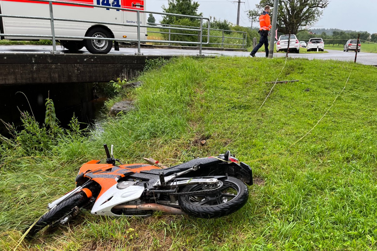 Der junge Motorradfahrer musste nach dem Unfall in Amriswil TG ins Spital gebracht werden. (Bildquelle: Schaffhauser Polizei)