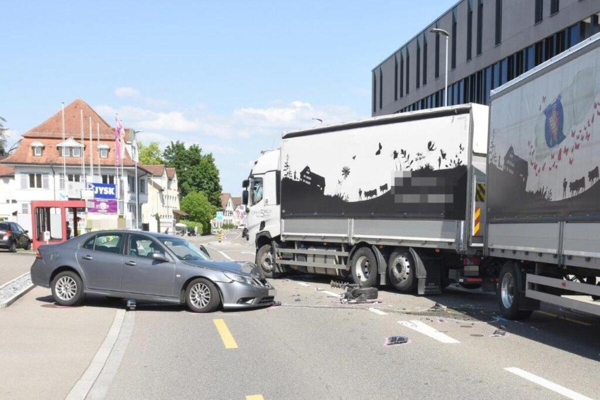 Gestern, 26.05.2023, kam es zu einem Verkehrsunfall in Amriswil. Ein Lastwagen mit Anhänger kollidierte mit einem Auto, das über die Mittellinie geraten war. Eine Person erlitt mittelschwere Verletzungen. Der betroffene Abschnitt wurde für mehrere Stunden gesperrt.