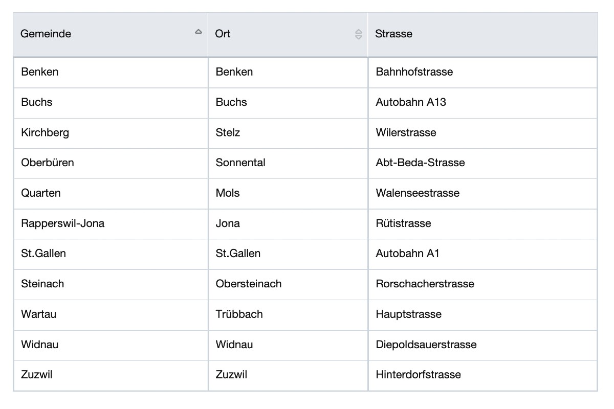 Radar - Warnungen: Diese Liste ist gültig per 25. Februar 2022 für den Kanton St.Gallen