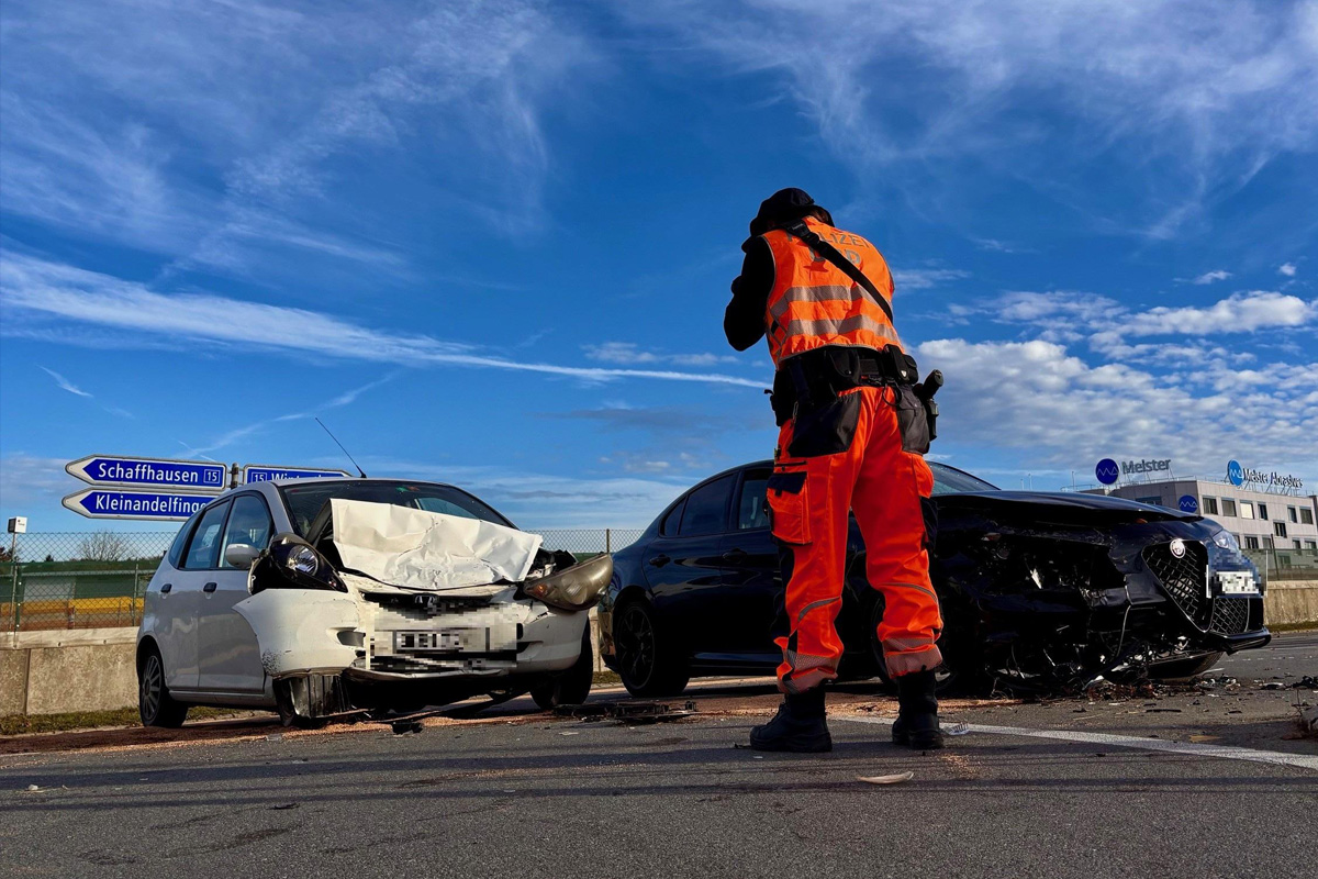 Dabei kam es aus noch unbekannten Gründen zu einer Frontalkollision mit einem zweiten Auto, das zur selben Zeit von Schaffhausen herkommend in Richtung Winterthur fuhr. Der 29-jährige Autofahrer war mit seiner Frau und drei Kindern unterwegs.
