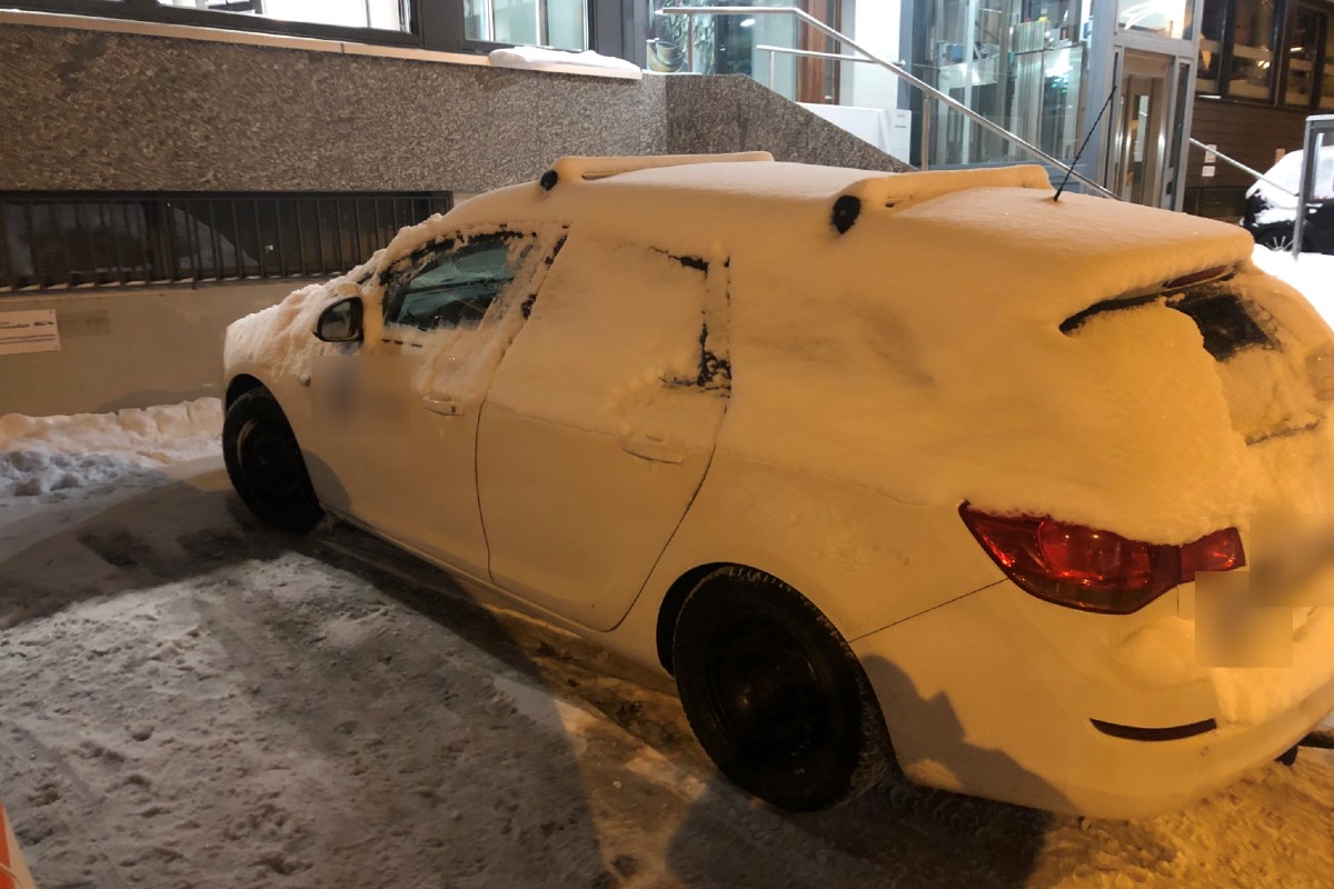 Andermatt UR - Auto mit vereisten sowie schneebedeckten Autoscheiben angehalten